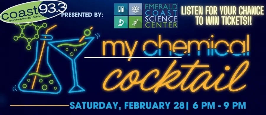 Coast 93.3 joins Emerald Coast Science Center for “My Chemical Cocktail,” Saturday, February 28th. Get ready to enjoy this cocktail mix-off as you sample and vote for the most scientific (and delicious) cocktails in the area. This is the 4th annual event benefiting the Emerald Coast Science Center on Memorial Parkway. Listen to win tickets this week with Leslie & Chris in the Morning. And get more details here!